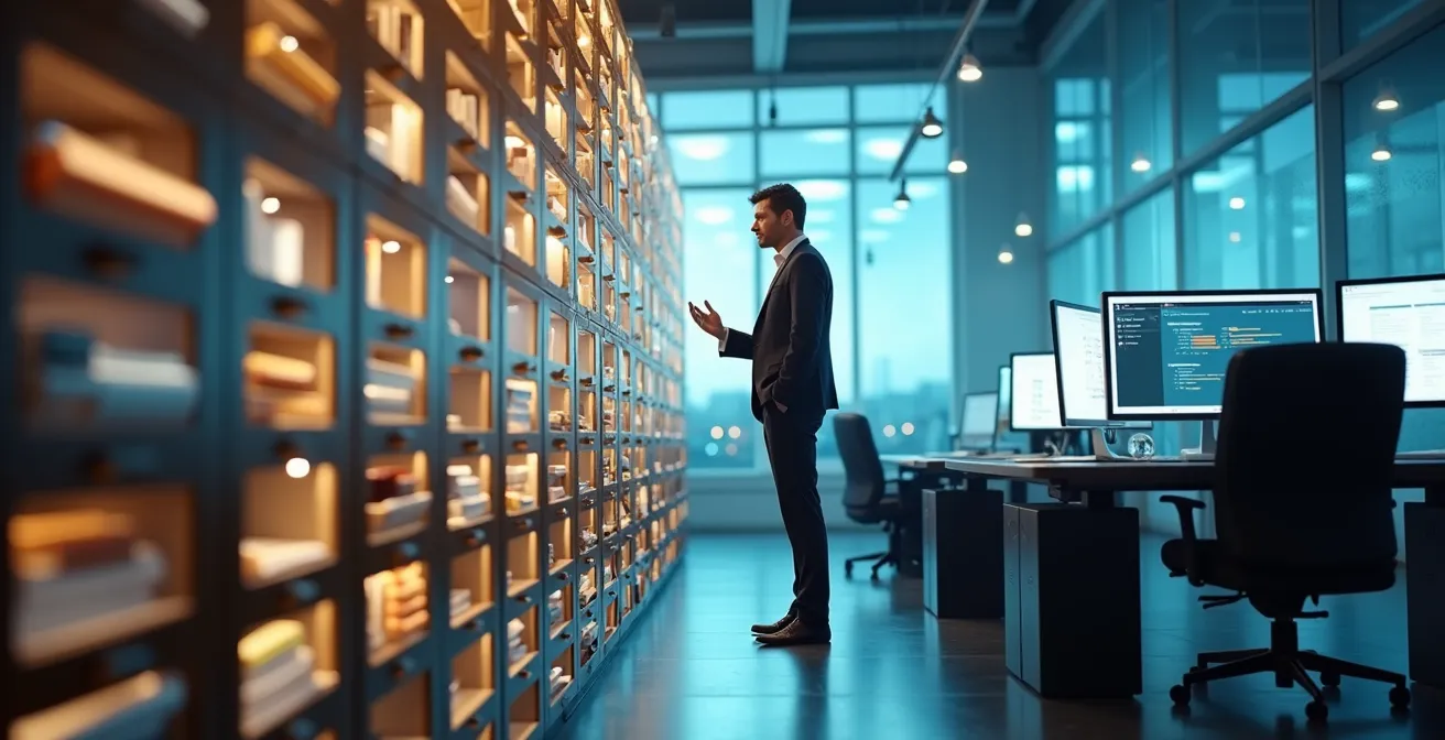 Beyond space, consider the “human latency” cost. Every time an employee leaves their desk to find a document, the clock is ticking. A 15-minute search for a misfiled contract isn’t just a minor annoyance; it’s a direct hit to productivity. When multiplied across your team and throughout the year, this lost time represents a significant hidden operational expense. Think of it as a quiet tax on your company’s efficiency, paid every single day.